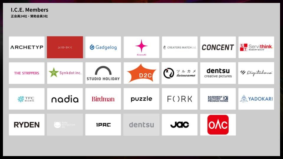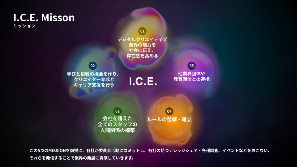「この度新理事長に就任した、ザ・ストリッパーズ株式会社の遠崎です。副理事長には株式会社フォークの佐藤剛理事、株式会社D2Cの山口浩健理事も新たに就任し新体制となりました。どうぞよろしくお願いいたします。I.C.E.が設立された十数年前から変化し、現在、多くの会社がデジタル技術を有している状態となり “デジタルクリエイティブ業界” ってどういう人たちの集まりなんだろう? と、認知が薄くなってきていると感じています。ウェブサイトやアプリ、サービスはもちろんのこと、万博のパビリオンなど私たち業界の仲間が数多く活躍していることが伝わりきれていないなとも思っております。そういった中で業界団体として、業界の魅力を伝える活動や、成長を続けるための取り組み、働き続けられるようにするための活動などに取り組んでまいります」(遠崎)