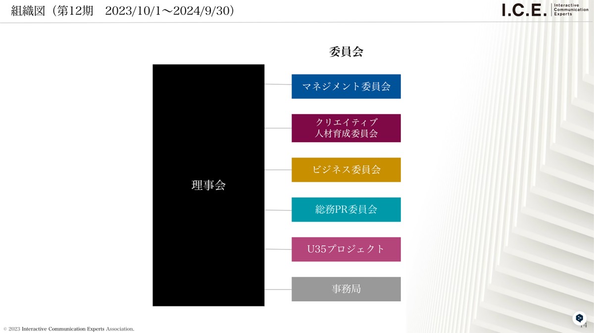 一般社団法人 Interactive Communication Experts(以下、I.C.E.)は、2023年12月12日に『第12期 定時社員総会』と懇親会を開催いたしました。